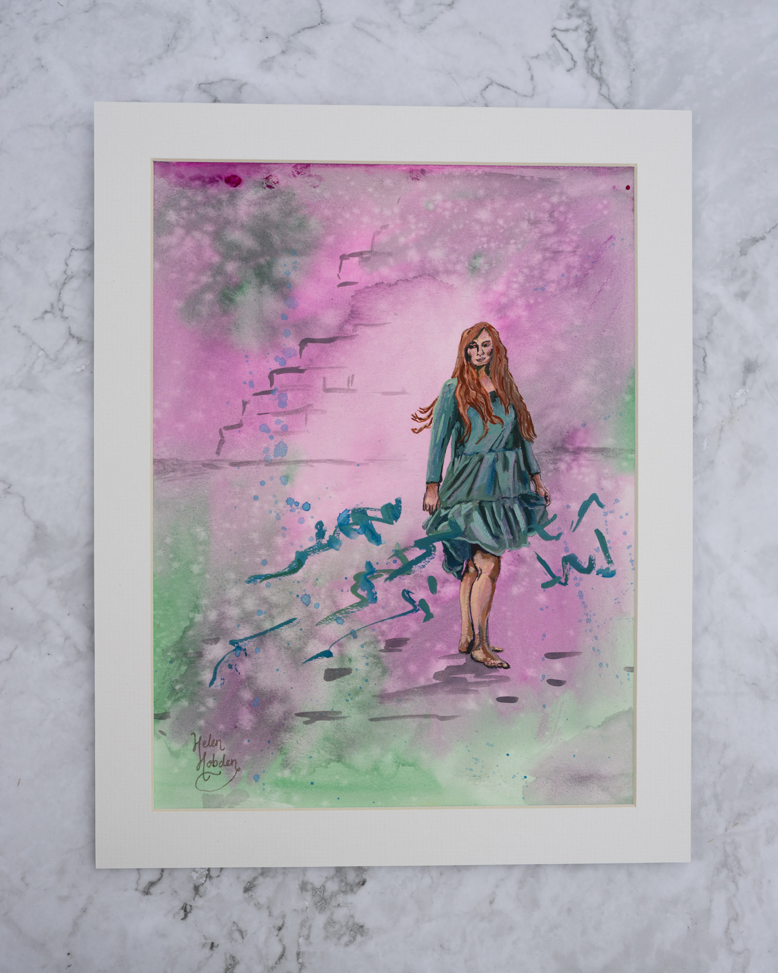 Original watercolour and gouache painting on paper. Varnished and mounted onto an acid-free card frame.
