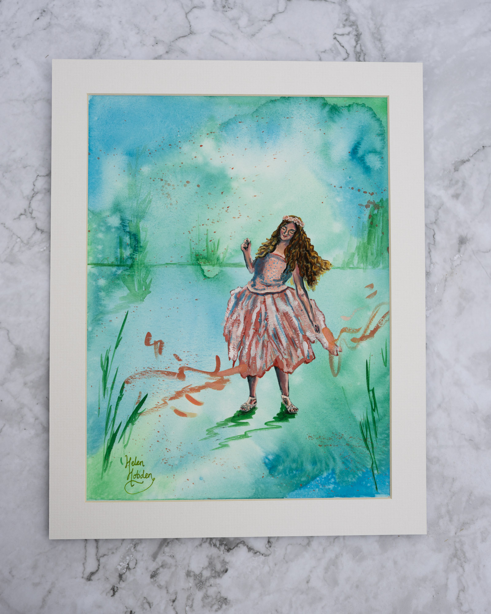 Original watercolour and gouache painting on paper. Varnished and mounted onto an acid-free card frame.